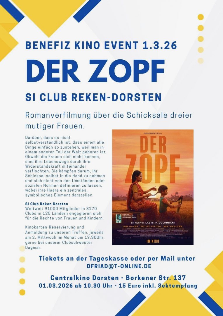 Kinokarten-Reservierung und Anmeldung zu unseren Treffen, jeweils am 2. Mittwoch im Monat um 19.30Uhr, gerne bei unserer Clubschwester Dagmar.