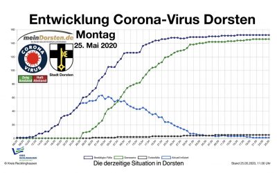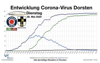 In Dorsten gibt es aktuell weiterhin 152 offiziell gemeldete und bestätigte Corona-Erkrankte, wovon inzwischen 146 Personen als wieder gesund…