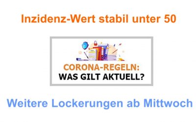 Weitere Lockerungen ab Mittwoch Die relevante Sieben-Tages-Inzidenz (RKI) im Kreises Recklinghausen liegt seit fünf aufeinanderfolgenden…