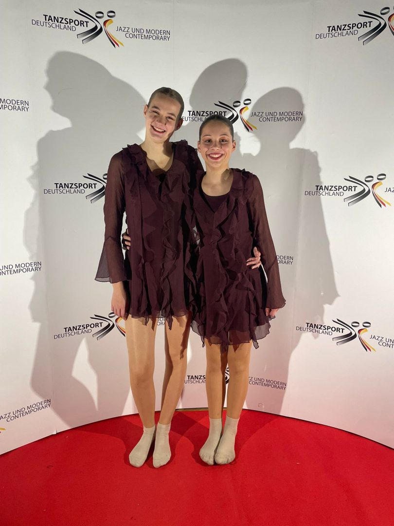 Annika Vennebusch und Matilda Bösing zeigten ebenfalls eine Choreographie von Lisa Bläser, Laura Bellendorf und Eileen Partus zu Dreams von Nuages, in der Kategorie Jugend Duo 2. Die beiden überzeugten die Jury und zogen souverän in die Zwischenrunde ein. Nach einem zweiten starken Durchgang reichte es zwar knapp nicht fürs Finale, aber mit einem geteilten 9. Platz von 17 Startern waren beide mehr als stolz.