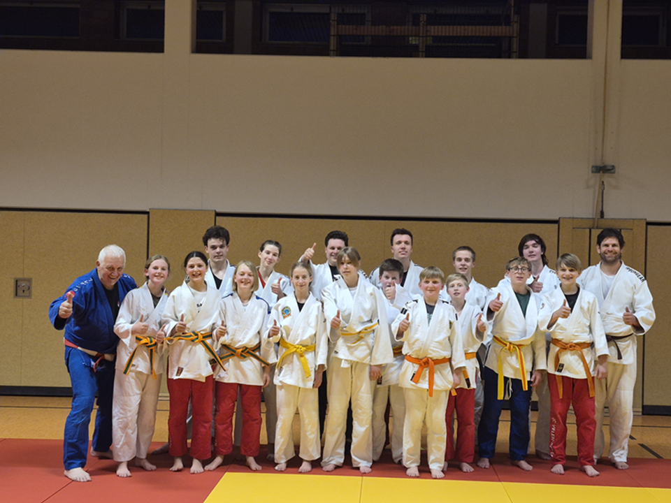 Den Abschluss des Trainingstages bildete die Erwachsenengruppe, die zahlreich erschienen war, um von der Erfahrung des 28-fachen Landesmeisters zu profitieren. Neben konkreten Übungsformen vermittelte der Judoka auch theoretische Hintergründe zu Technikverständnis, Trainingsstruktur und mentaler Stärke.