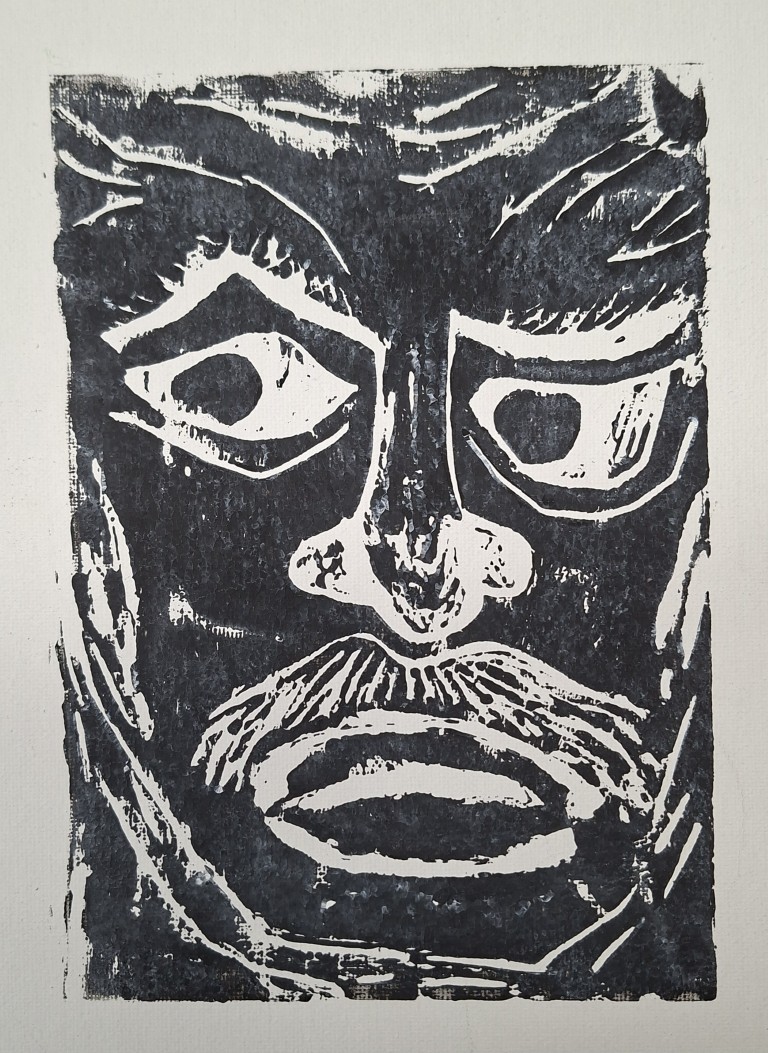Linoldruck „Männliches Gesicht“
