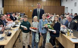 Zu Beginn der Ratssitzung am Mittwoch (19. November) hat der Rat der Stadt Dorsten die amtierende Kinderbürgermeisterin Mia Henkel und den Kinderbürgermeister Elyas Tiemann offiziell nach ihrer einjährigen Amtszeit verabschiedet. Bürgermeister Tobias Stockhoff würdigte das Engagement der beiden Grundschülerinnen und Grundschüler: „Ich danke Euch herzlich für das tolle Jahr. Ihr habt die Interessen der Dorstener Kinder in den vergangenen zwölf Monaten wunderbar vertreten. Vielen Dank für Euren besonderen Einsatz.“