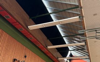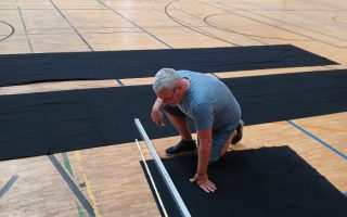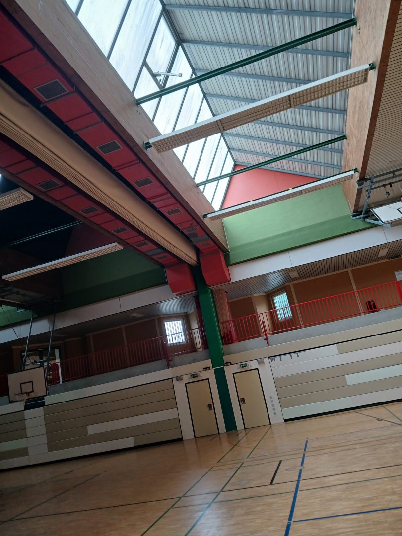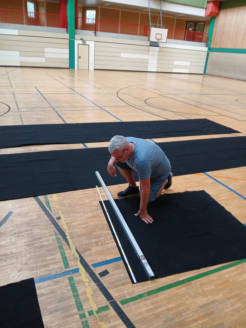 Mit dem Vorbereitungsarbeiten in und an der Sporthalle wurde bereits begonnen, dabei stellte sich die Verdunkelung der Halle als doch sehr umfangreich heraus.