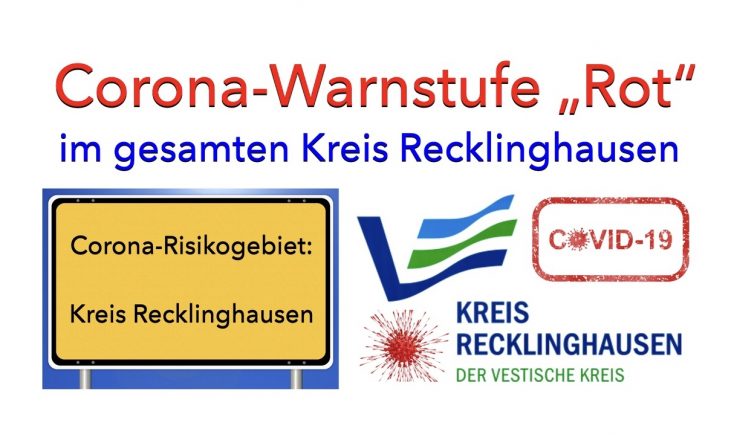 Warnstufe Rot: Der gesamte Kreis Recklinghausen gilt seit gestern als Corona-Risikogebiet Fragen und Antworten: Welche Auswirkungen hat das auf geplante Reisen, private Feiern, Corona-Tests, etc.? Der gesamte Kreis Recklinghausen gilt seit gestern (Samstag, 10. Oktober 2020) als Corona-Risikogebiet, da auf der Seite des Landeszentrums Gesundheit NRW (LZG) der Inzidenzwert von 50 Neuinfektionen pro 100.000 … Warnstufe Rot: Der gesamte Kreis Recklinghausen gilt seit gestern als Corona-Risikogebiet weiterlesen